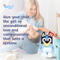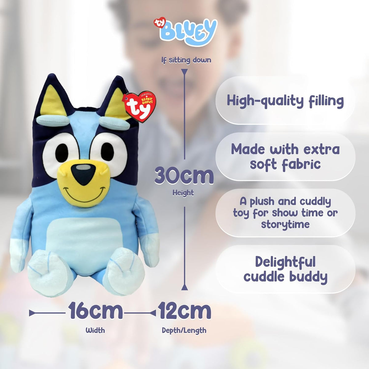 With the TY Bluey Beanie, you can bring your beloved Bluey figure home! In vivid navy, light blue, and yellow, this 30 cm plush toy embodies Bluey's playful nature. She is ideal for games, cuddles, or display because of her incredibly soft fabric. This adorable companion, intended for viewers 18 months and older, delivers happiness and familiarity from the cherished television program into the real world. A charming addition for any Bluey collector or a delightful present for young children.
