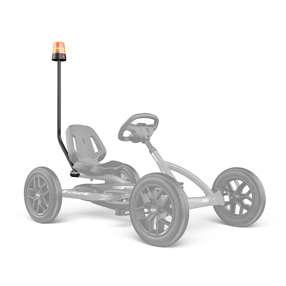 The BERG Flashing Light for Buddy & Rally is the ideal addition to your child's go-kart for increased visibility and enjoyment. This flashing light is made to fit all BERG Buddy and Rally models, and it mounts to the rear frame with ease using a sturdy bracket that remains in place throughout every ride. Whether your youngster wants to be a race car driver, police officer, or firefighter, the bright flashing light makes them stand out and improves safety. Convenient battery-operated (batteries not supplied), it's an easy way to add excitement to any outdoor excursion. This BERG accessory is made with quality in mind and has a three-year warranty for long-lasting enjoyment.
