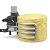 The gripper opens and closes by simply turning the upper hand wheel. The bale gripper fits all BRUDER slip-on front loaders for tractors, all BRUDER telehandlers, as well as the Schäffer compact loader and CAT wheel loader and compact track loader.