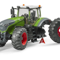 The new Fendt 1050 Vario is Fendt's top-of-the-range product model. This tractor really owns up to attributes, such as big, strong and unique! Its design, handling and traction force are unique. With this item BRUDER is showcasing the first model of the new 4000 series. It represents a new reference point with an outstanding attention to detail, is easy to play with and comes with the typical BRUDER characteristics, high levels of toughness and quality. The model also features established characteristics, such as the steered front axle or the height-adjustable rear coupling to attach any Professional series trailer. However, there are also some new functions, such as the re-designed front mount to attach accessories and the special highlight, re-developed axles with detachable wheels.