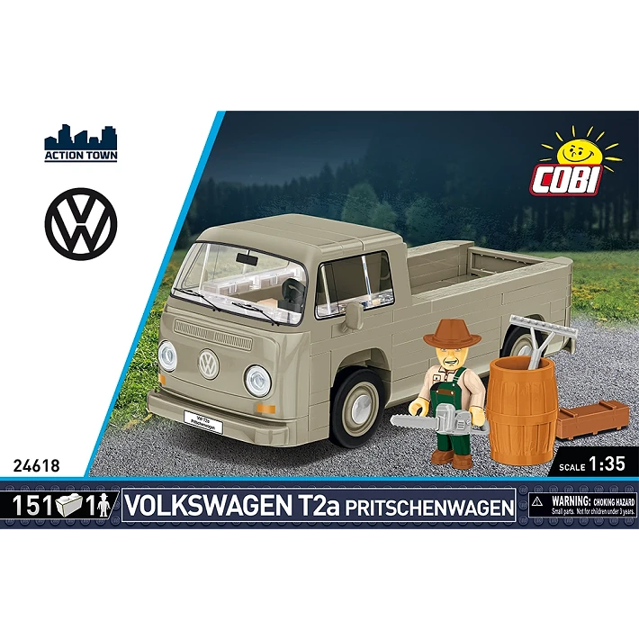 The COBI Volkswagen T2a Pritschenwagen, a 1:35 scale model that captures the essence of the time, will transport you back to the 1960s. With the 151 premium construction bricks in this building set, you can create an intricate model of the famous flatbed Transporter. The vehicle has revolving wheels, rubber tires, and a traditional beige body. A miniature figure with accessories is included, making it ideal for making a charming diorama. This set provides an enjoyable and captivating building experience, making it perfect for builders seven years of age and older. The COBI Volkswagen T2a Pritschenwagen is a beautiful addition to any collection, regardless of your preference for vintage styles or automobiles.