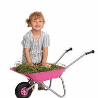 The rolly Metal Wheelbarrow Pink is a must-have toy for young gardeners aged 2 ½ and up. Available at Toys At Foys, this durable wheelbarrow is made from high-quality metal and features child-friendly plastic handles.