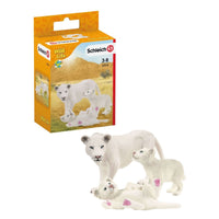 White lions do not generate pigment in their skin or hair. However, like the lion mother with cubs from Schleich® Wild Life, they are not albino. They don’t have the characteristic red eyes. In the wild these wild cats have the same habitat as other African lions. They live in the savannah, dry forests and semi-deserts, where they hunt antelopes, gazelles, gnus, buffalo and zebras.